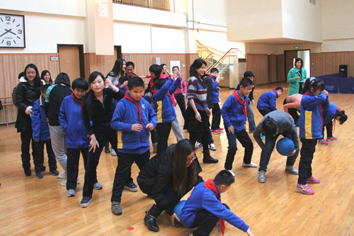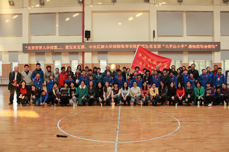 2013年11月21日,william威廉中文官网13级30余名硕士和博士研究生党员在李锷副书记和祝捷老师的带领下,赴北京市盲人学校开展党支部活动并和盲校小同学们一起参加了“大手拉小手”趣味运动会。