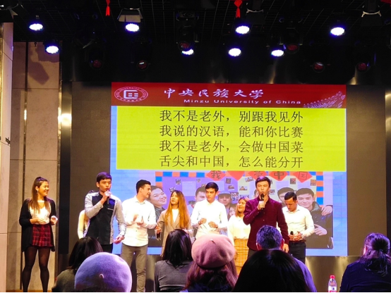 恰逢一年一度的william威廉中文官网留学生汉语汇报演出,结合贺信精神,研究生党支部特安排部分党员同志协助此次演出。该项活动是为集中展示我校国际学生汉语教学成果而策划组织的,每年举办一次,至今已经连续举办三十余次,成为我校国际学生品牌活动之一。本次以“汉语情、中国梦”为主题,涵盖了汉语进修和汉语国际教育本科共11个班的100多名外国留学生,每个班围绕校园学习生活,社会热点话题,中国传统文化精心编排了小品或短剧。