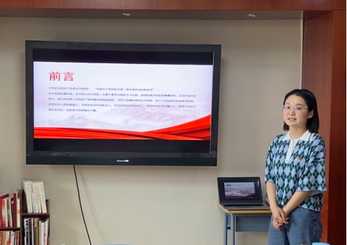 牛琛淞同志由新文化运动引入,带领支部党员从“新民主主义革命时期完成救国大业”、“社会主义革命和建设时期完成兴国大业”、 “改革开放和社会主义现代化建设新时期推进富国大业”以及“ 推进中国特色社会主义新时代、实现强国大业”四个阶段回顾党的一百年辉煌历史。