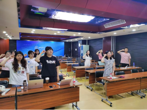 第三项会议议程是重温入党誓词。入党誓词是党员对党和人民的庄严承诺,也是需要践行一生的誓言。与会党员在牛琛淞同志的带领下,一起举起右手面对党旗重温了入党誓词。