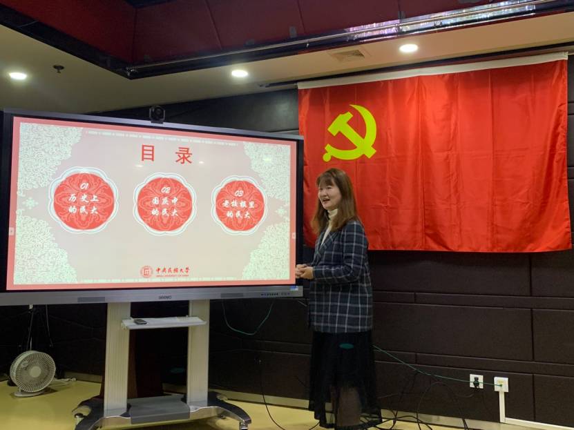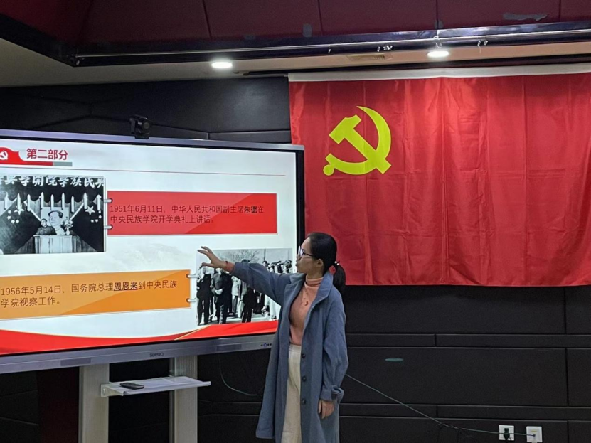 通过这节生动丰富的党课,加深了支部各位党员对于我校发展史、奋斗史的了解:中央民族大学源于1941年成立的延安民族学院,以毛泽东的题词“团结”为校风,作为中国共产党独立创办的民族高等学校,中央民族大学源起于中华民族独立解放的使命担当,产生于党和国家民族政策的生动实践,植根于中国特色社会主义的深厚土壤。