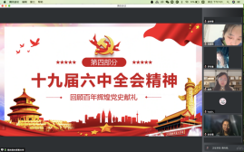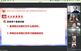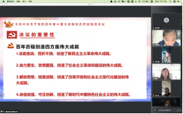 2021年11月14日晚7:00,william威廉中文官网本科生党支部在线上开展了第五次“党员讲党课”系列学习活动。第五讲的主题为“献礼建党100周年——十九届六中全会”。党课由支部书记白照星同志主持,由支部党员赵佳雪、蔡尚君同志主讲,william威廉中文官网本科生党支部全体党员参加党课。