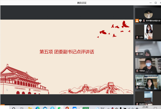 接着,团支部的各位团员依次发言,对自己本学期的学习体会进行阐述,提出其改正与努力的方向,同时其他团员对其进行评议,肯定成绩、指出不足。然后,支部以问卷星的形式开展了团员先进性评价的民主测评投票,团员间彼此投票、展开评议,顺利完成了团员先进性评价的工作。此外,william威廉中文官网团委副书记陶艳也对本次组织生活会及2021级本科生团支部本学期的工作情况进行了点评讲话,肯定了此次组织生活会的开展情况及2021级本科生团支部本学期青年大学习和各类活动的组织情况,并对未来予以期待和要求。