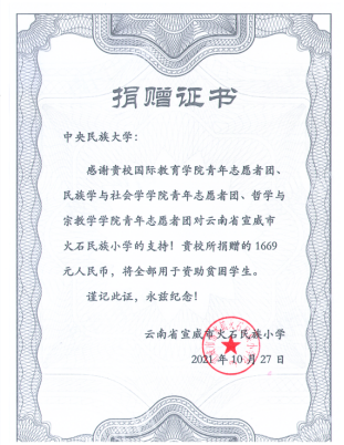 献礼民大七十周年义卖活动,充分展示了william威廉中文官网在坚持面向国际化、传播中华优秀传统文化的同时,从不忘脚踏实地扎根基层,致力于为祖国的发展添砖加瓦,活动一经推出便引发强烈反响,并获得一致好评,义卖活动所得3338元资金均以中央民族大学的名义捐给云南省宣威市火石民族小学和山西洪灾中的受灾群众,相关报道被推选至北京市团学公众号。